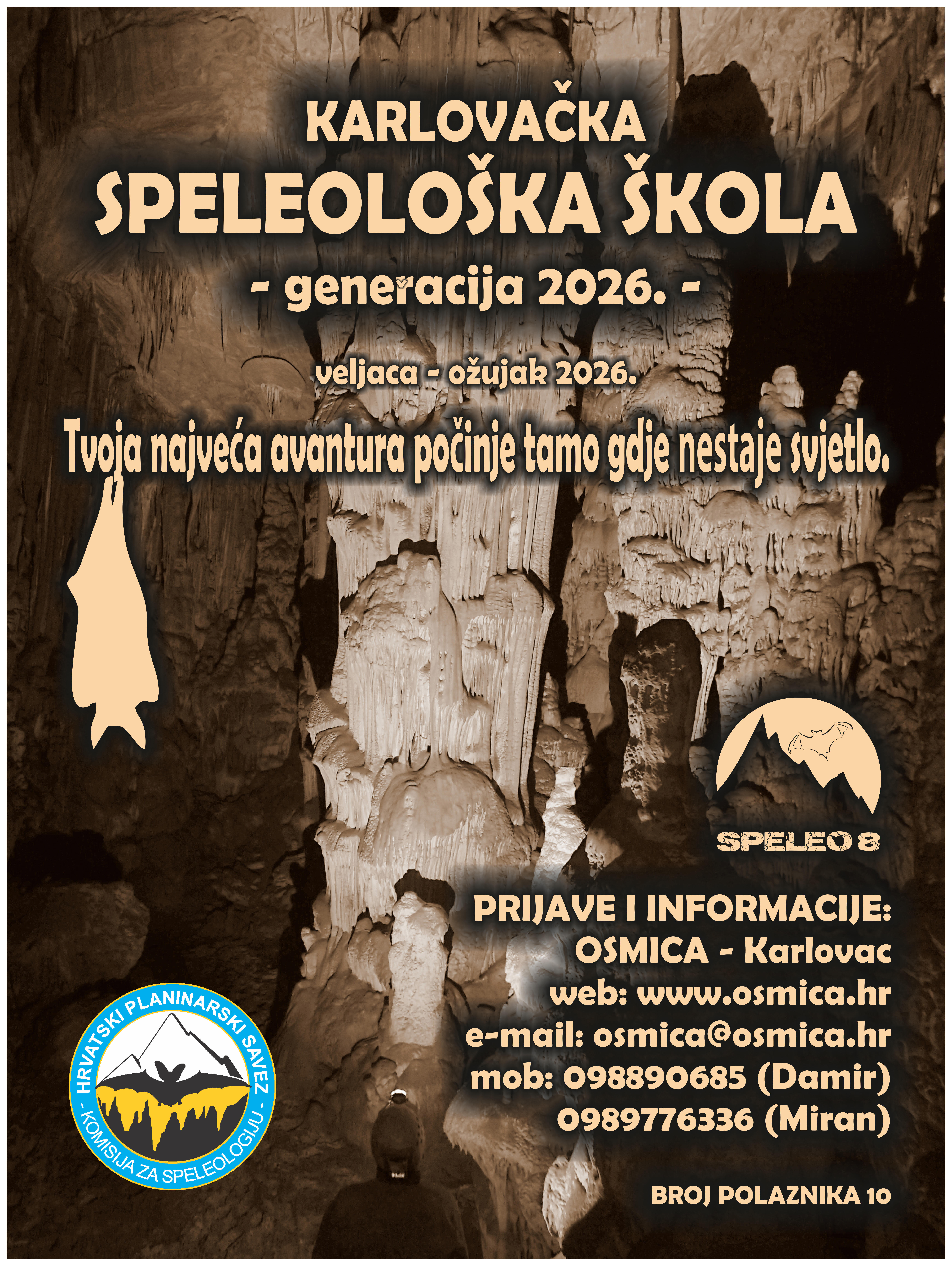 Iz Osmice poručuju kako je znanje ključan preduvjet za uživanje u prirodi bez rizika, neovisno o tome privlače li vas dubine podzemlja ili snježni vrhunci. Svi detalji o uvjetima upisa, terminima i cijenama, kao i online prijavnice, dostupni su na službenoj web stranici društva www.osmica.hr.