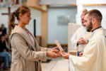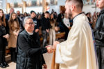 Tokom misnog slavlja učenici su izgovorili pripremljene molitve u obredu Molitve vjernika i prinijeli prigodne darove kao prepoznatljiv znak njihovog srednjoškolskog obrazovanja. I molitve vjernika i prinesene darove oblikovali su prinijeli i izrekli sami srednjoškolci. A u prigodnoj homiliji između ostalog vlč. Filip srednjoškolcima je poručio kako je župa zajednica s kojom se susrećemo u crkvi, mjestu u kojem se nalaze i isprepliću tri bitne stvari. Tu mi Gospodin dolazi u susret, u lomljenju kruha, u darovanoj Riječi, u zajednica u kojoj se priznajemo jedni drugima braćom i sestrama. Prepoznajemo se jednakima u slabosti, grešnosti i krhkosti, ali i u spoznaji da smo ljubljena djeca Božja. Ponekad nam se pojavi napast da Isusa moram susreti u nekoj izvanrednosti. Doći će trenutak kada će se i na taj način pokazati, ali pritom ne smijemo odbaciti redovitost. Iako ne vidim Isusa, on je uza me. To je jedna velika milost za naše živote. Gospodin je tu s nama i daruje nam se. Dolazi nama u susret i prije nego što ga mi zavapimo i zamolimo. O tome smo slušali i u svjedočanstvima Tare, France i Lare. Svima trima to je zajedničko. Prepoznale su u teškim životnim situacijama da je Isus došao u njihov život. Kako su posvjedočile nakon životnih teškoća dolazi onaj ali... Tako djeluje Isus. Izgubio sam tatu, imam zdravstvenih problema, ne prihvaćaju me, tada dolazi onaj Gospodnji ali. To je Gospodin Isus. Zato ga zamolimo za milost Duha Svetoga da nas prati na životnome putu, da budemo pozorni na njegova nadahnuća, da znamo živjeti kao braća i sestre, da znamo živjeti od njegove riječi i od njegova tijela i krvi, da tako svima drugima možemo biti svjedoci Radosne vijesti jer to mi kršćani jesmo poručio je srednjoškolcima vlč. Šešek.