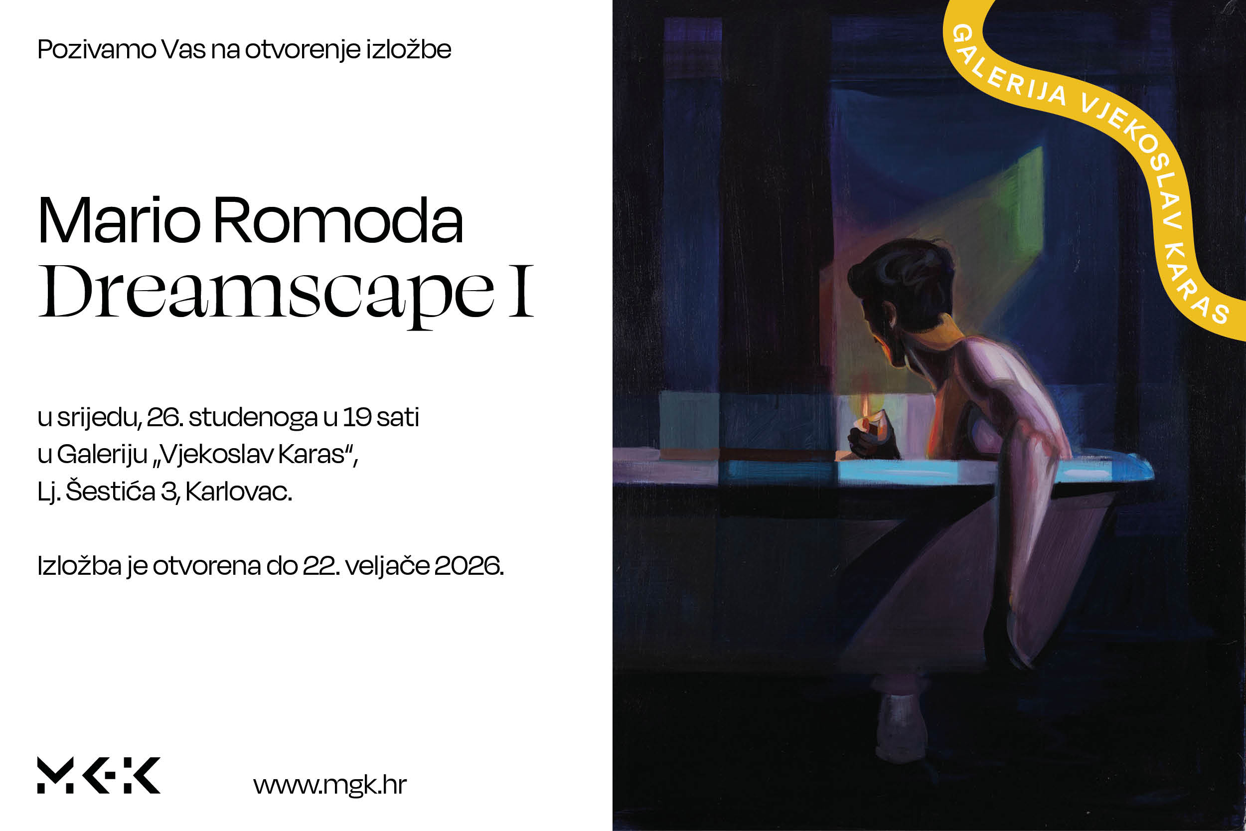 Ove srijede u Galeriji „Vjekoslav Karas“ otvora se izložba "Mario Romoda: Dreamscape I. Kustosica izložbe je muzejska savjetnica Antonija Škrtić, a izložba ostaje otvorena do 22. veljače iduće godine.