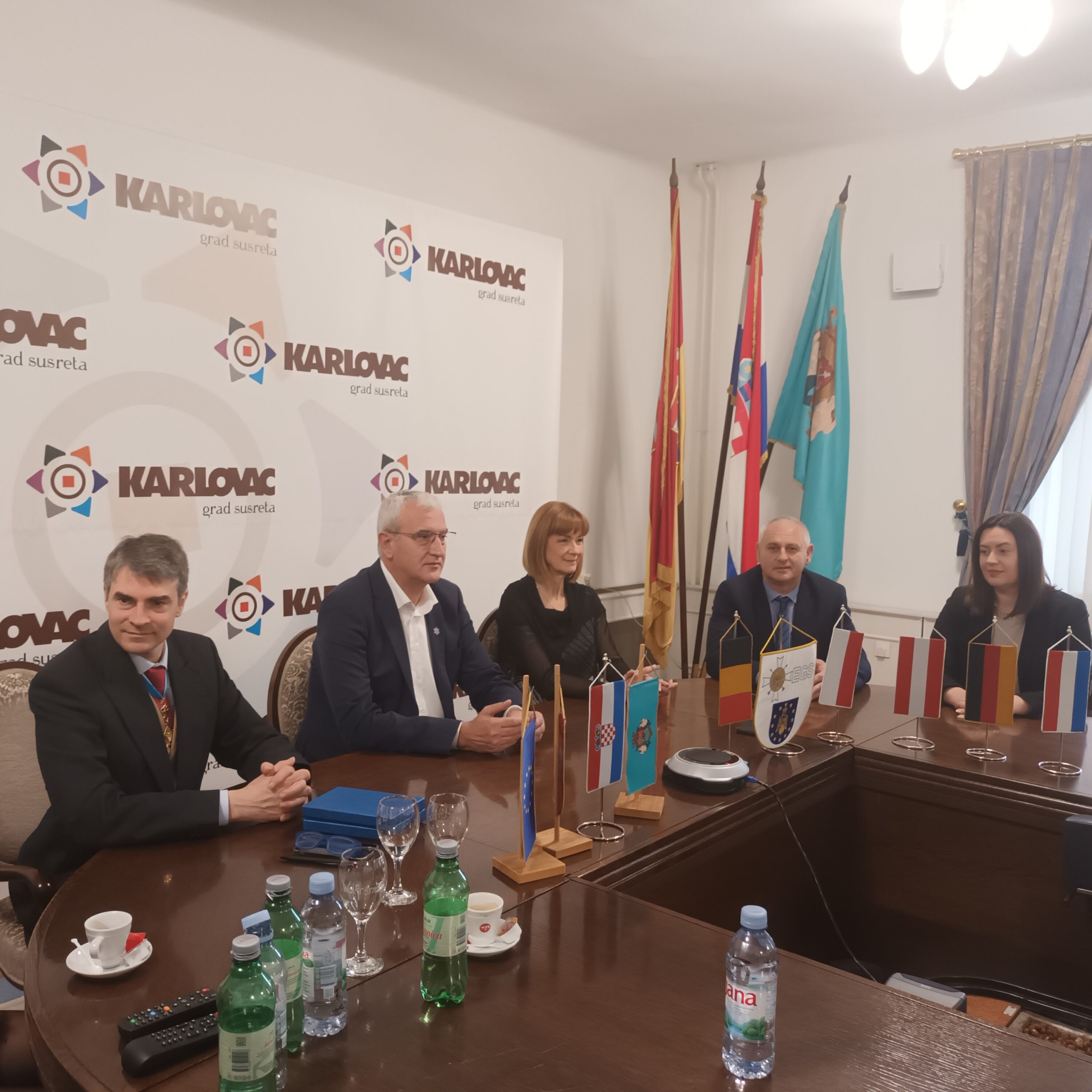 -Drago mi je još jednom da se odabrali Hrvatsku, Karlovac, Karlovačku županiju da održite sastanak predsjedništva pete regije ovdje u Karlovcu. Neki od vas su ovdje prvi puta, a neki su već i nekoliko puta posjetili Karlovac. Još ćemo se vidjeti i iduće 2026. i 2027. godine. Od 20. do 22. kolovoza 2026. biti će jesensko zasjedanje EGS-a, a Karlovačka građanska garda u to vrijeme slavit će 270 godina od osnivanja i 30 godina od obnove, izjavio je zapovjednik Karlovačke građanske garde, Emil Črne. Ujedno je upoznao goste s ovom povijesno-protokolarnom postrojbom, istaknuvši između ostalog kako ona danas broji 26 aktivnih članova, te nekoliko podupirajućih i počasnih članova.