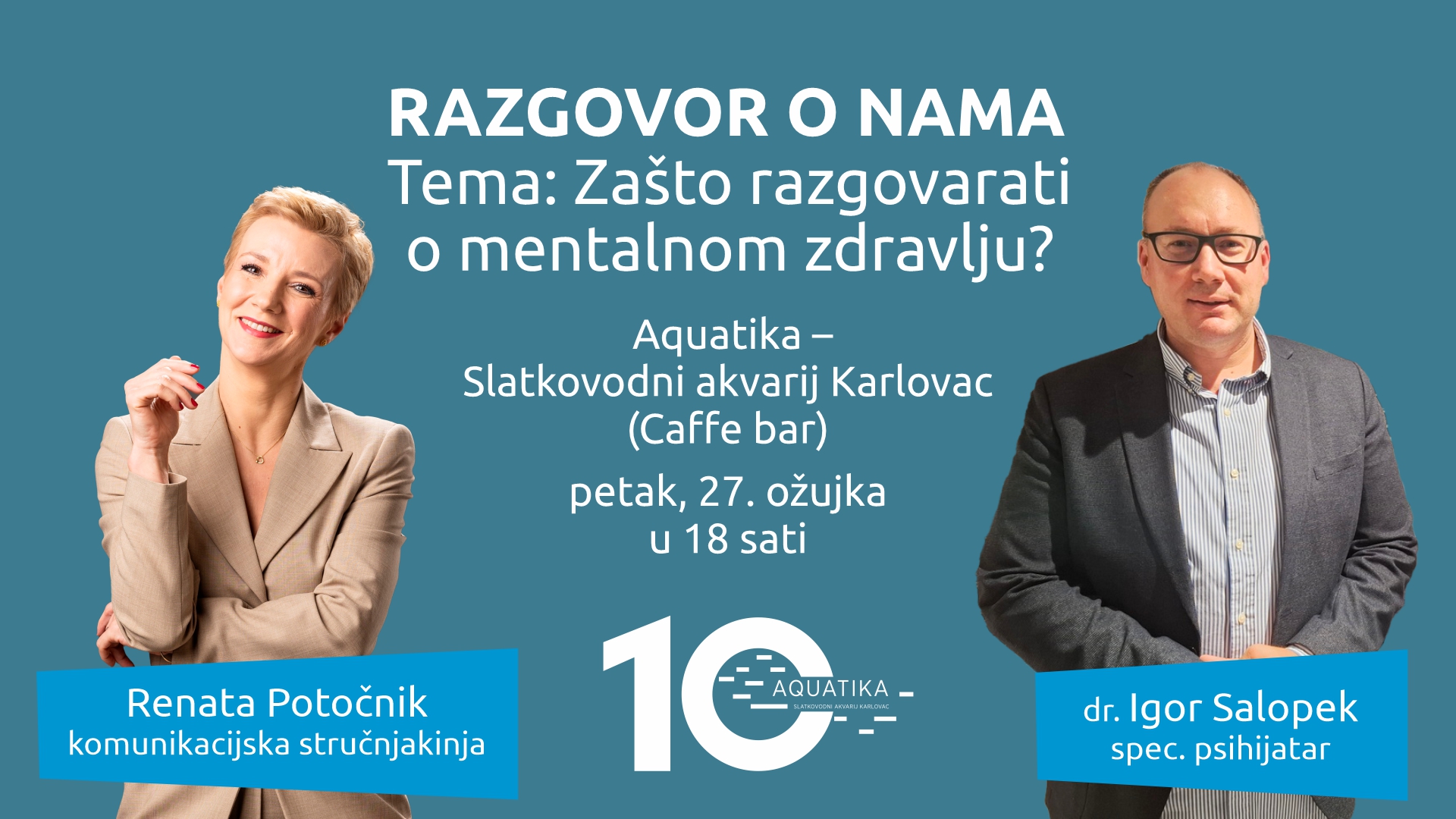 Nakon odlično prihvaćenog prvog susreta “Razgovora o nama”, karlovačka Aquatika nastavlja s novim programom otvorenog dijaloga s publikom koji će se održati ovog petka u 18 sati u caffe baru Aquatike.