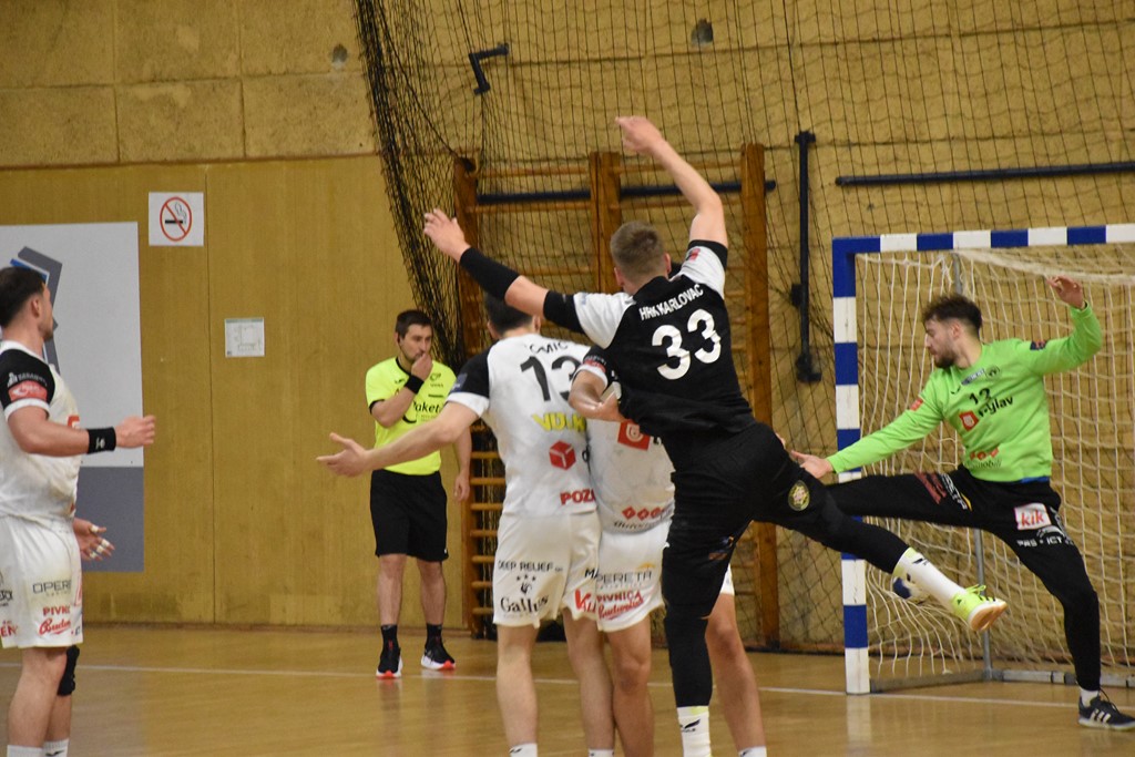 Rukometaši "Karlovca" poraženi su danas u Sportskoj dvorani na Rakovcu u osmini završnice Hrvatskog kupa od momčadi "Sesveta Triglav osiguranja", koja je član Paket24 Premijer lige. Utakmica je bila ravnopravna i zanimljiva, a gosti su u završnici pobijedili s 35:33, nakon prvog poluvremena bilo je 17:15 za Karlovčane. Rukometaši "Karlovca" bili su vrlo blizu iznenađenju u susretu s drugom po kvaliteti hrvatskom momčadi. Karlovčani su jako dobro igrali tijekom utakmice, ali su popustili u završnici i to su gosti iskoristili. U prvom poluvremenu kod rezultata 10:12 domaći igrači napravili su seriju 4:0 i poveli u 23. minuti sa 14:12. U 28. minuti Karlovčani su vodili sa 17:13, ali su gosti postigli dva pogotka, pa se na odmor otišlo sa 17:15 za domaću momčad. U 38. minuti momčad trenera Dinka Đankovića vodila je s 22:20, a u 39. minuti s 24:20, zatim je bilo i 25:21. Gosti su u 48. minuti izjednačili na 27:27, a u 50. minuti bilo je 28:28. Zatim je prednost otišla na stranu gostiju, bilo je 30:31 i 30:32. U 58. minuti, u situaciji s igračem više, Pinter smanjuje na 32:33, Prezelj upisuje obranu, Karlovčani imaju napad za izjednačenje, ali su izgubili loptu. Gosti su zabili za plus dva, bilo je 32:34, a Pinter dvadeset sekundi prije kraja smanjuje na 33:34, domaći kreću u presing, no Ivan Dumenčić u zadnjim sekundama potvrđuje pobjedu gostiju. Tako je momčad "Sesveta Triglav osiguranja" pobijedila s 35:33 i plasirala se u četvrt završnicu. Karlovčani su zaslužili čestitke za dobru igru i jak otpor favoritu. U karlovačkoj momčadi Ivan Rukavina postigao je jedanaest, a Benedek Pinter devet pogodaka. Vratar Luka Prezelj imao je osam obrana. "Karlovac" je nastupio u sljedećem sastavu: Radočaj, Marić, Cindrić, Anić, Barać, Rukavina 11, Stojanović 1, Šalković 3, Bačić 3, Mrljak 1, Fistonić 2, Rajič 3, Velimirović, Pinter 9 i Prezelj.