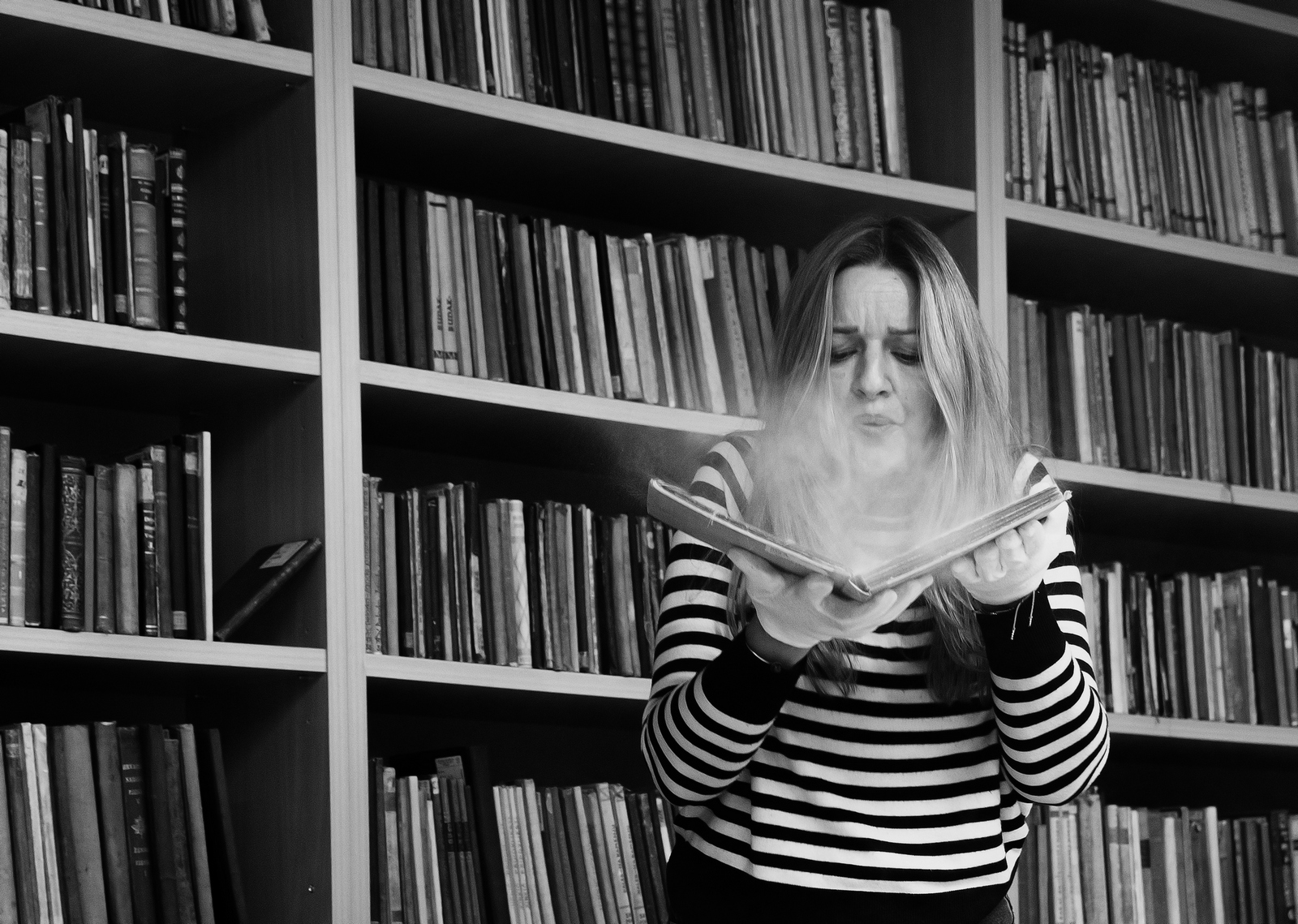 -Odabrao sam svoje kolegice iz knjižnice. Htio sam pokazati ljude koji rade "iza kulisa". To su Nada Car, naša knjigoveža koja obnavlja knjige, i Aleksandra Mikić Grginčić sa Zavičajnog odjela. Ljudi ih ne vide na posudbi, a njihov je posao ključan i vizualno vrlo zanimljiv.