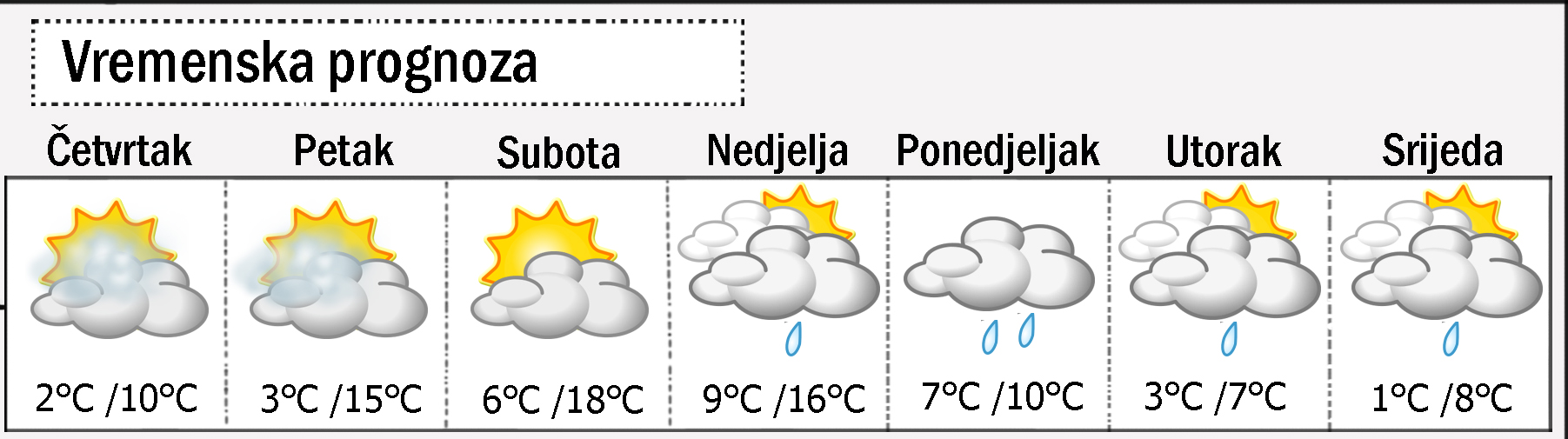 Temperatura u nedjelju bez veće promjene ili danju opet malo niža.