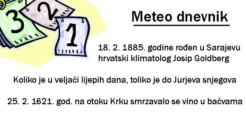 VREMENSKA SLIKA: Sredina mjeseca nam je ipak donijela ono tipično prevrtljivo vrijeme koje nudi veljača. Bilo je i sunca i kiše, i topline i hladnoće. Čini se da veljača prevrtača i u sljedećih nekoliko dana ima u planu pokazati svu raskoš vremenskih događanja. Prvo mraz pa kraća južina, zatim kiša, a tijekom petka možda bude čak i malo snijega. Nakon toga za vikend povoljnije, ali opet uz mrazna jutra. Sljedeći tjedan pak izgleda osjetno toplije.